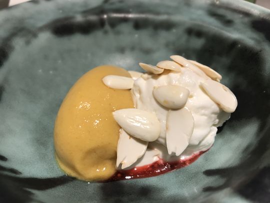 Los postres no me dicen nada, pero los golosos de mis acompañantes pecaron y yo no quise hacerles un feo…y ¡menos mal! Mágico el sabor de las almendras, goloso el de las fresas de la tierriña.