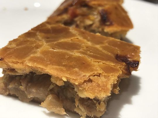 Y la fiesta gastronómica comenzó con un simple trozo de empanada que se deshacía en la boca, perfecto aperitivo para acompañar a las cañas mientras esperamos a nuestros amigos.